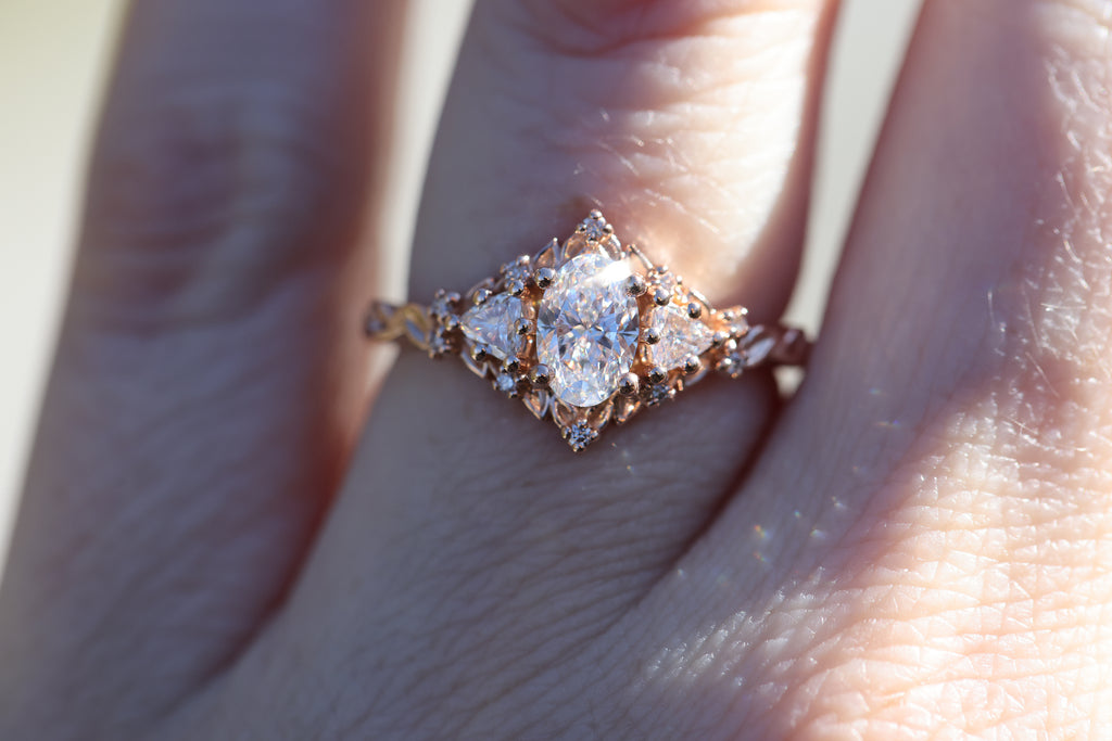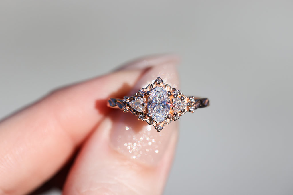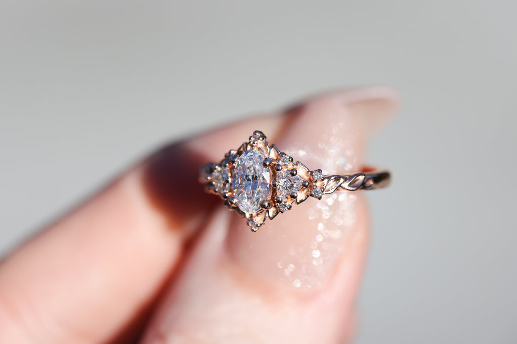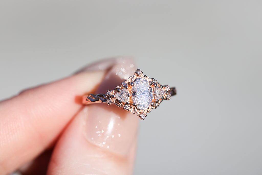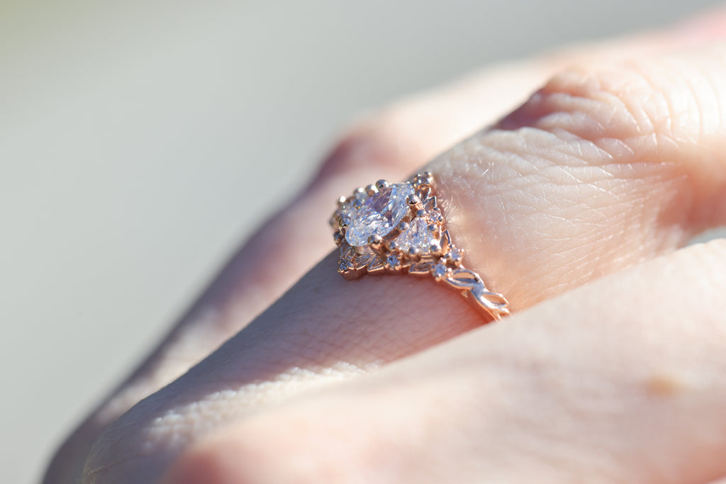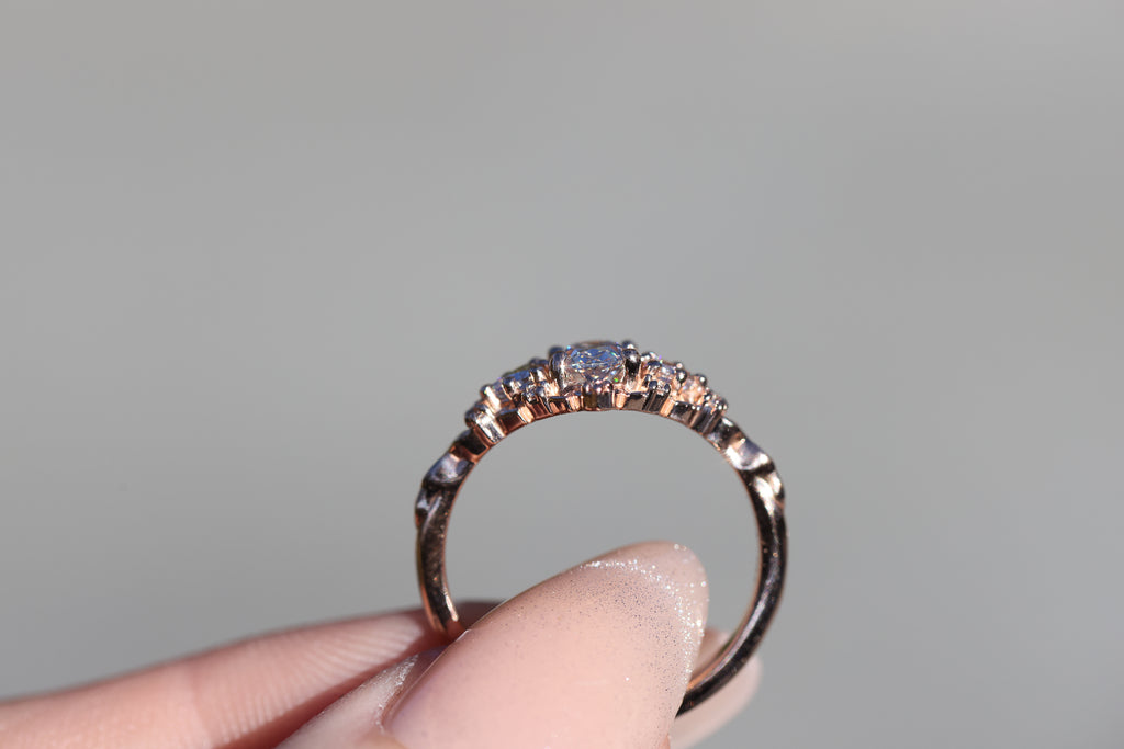 Ready to ship, Size 7 14k rose, Briar rose three stone