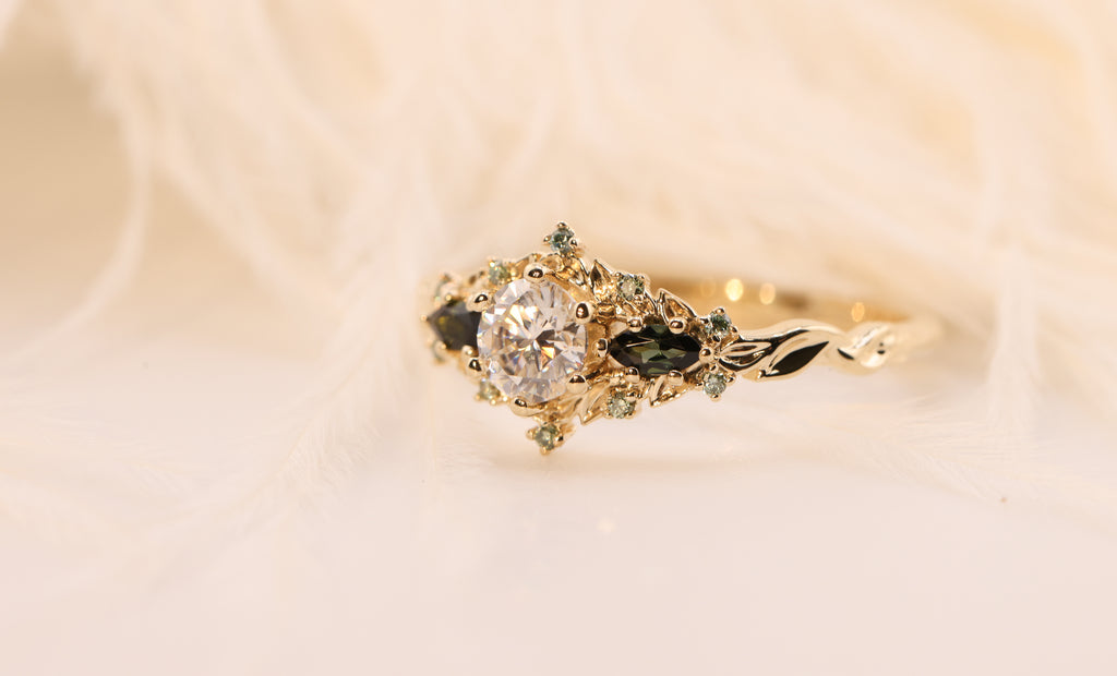 -Side/Accents: 4x2mm green tourmaline, 1mm mint diamond