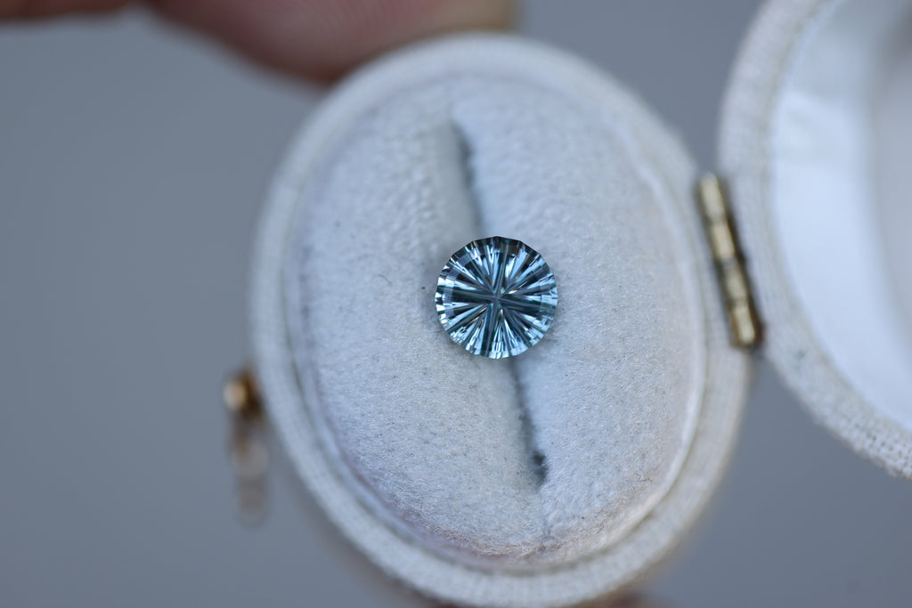 1.16ct round blue to purple color change sapphire, Starbrite cut by John Dyer