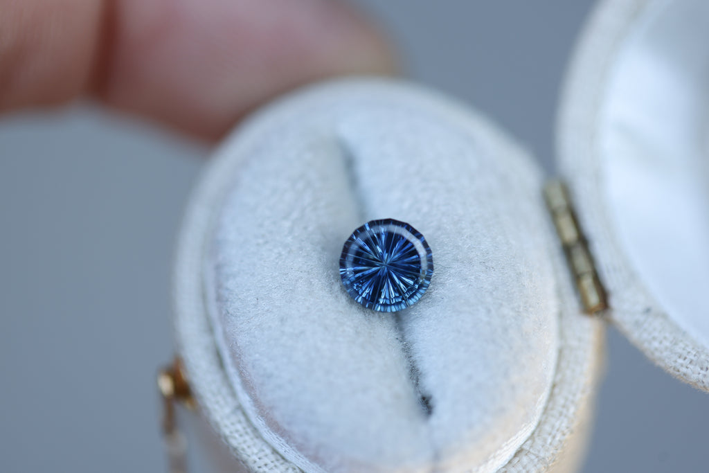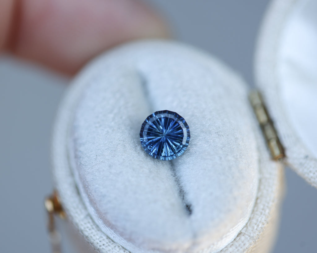 1.31ct round blue montana sapphire, Starbrite cut by John Dyer