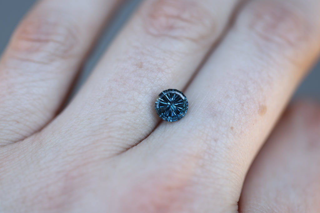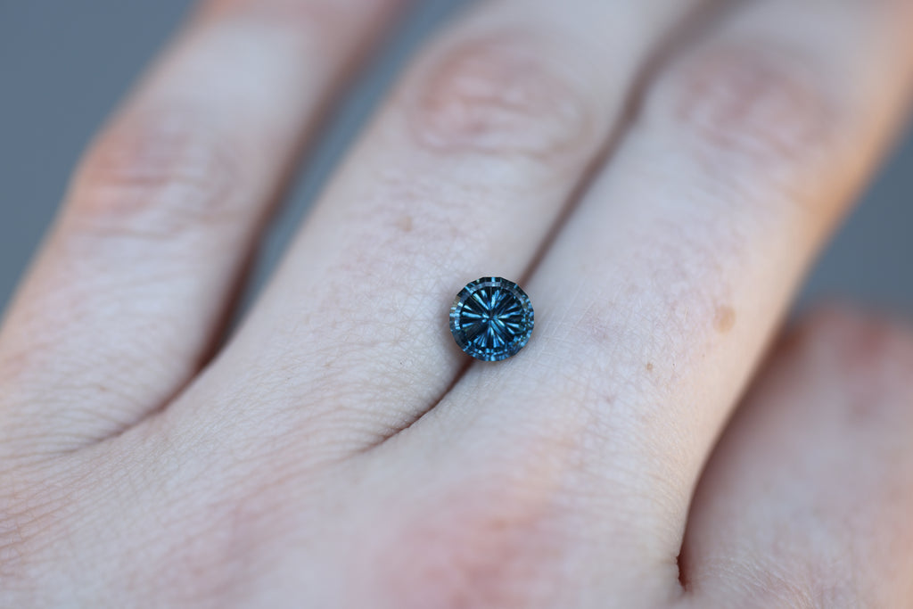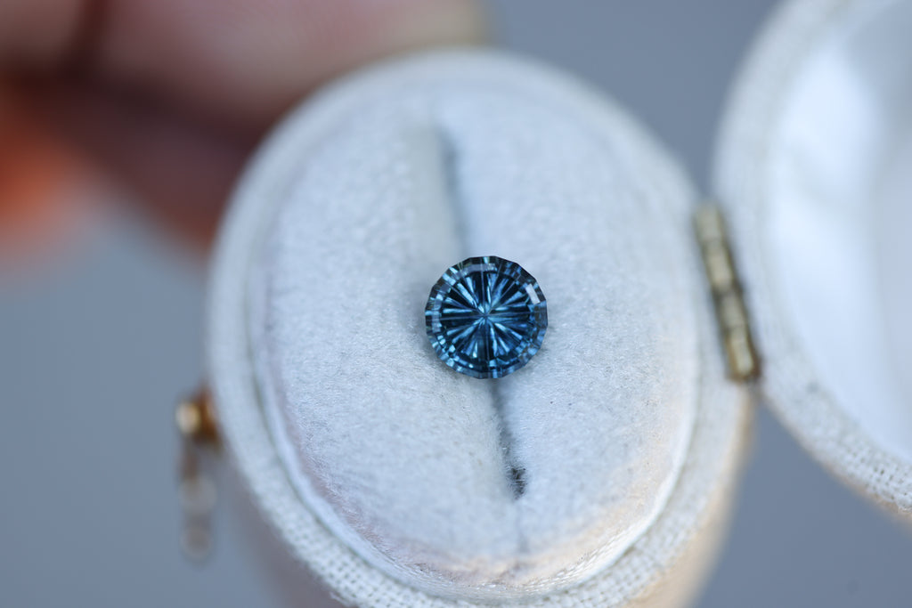 1.41ct round blue teal sapphire, Starbrite cut by John Dyer