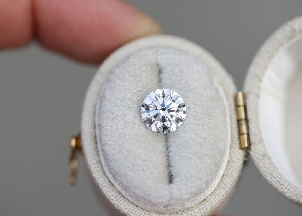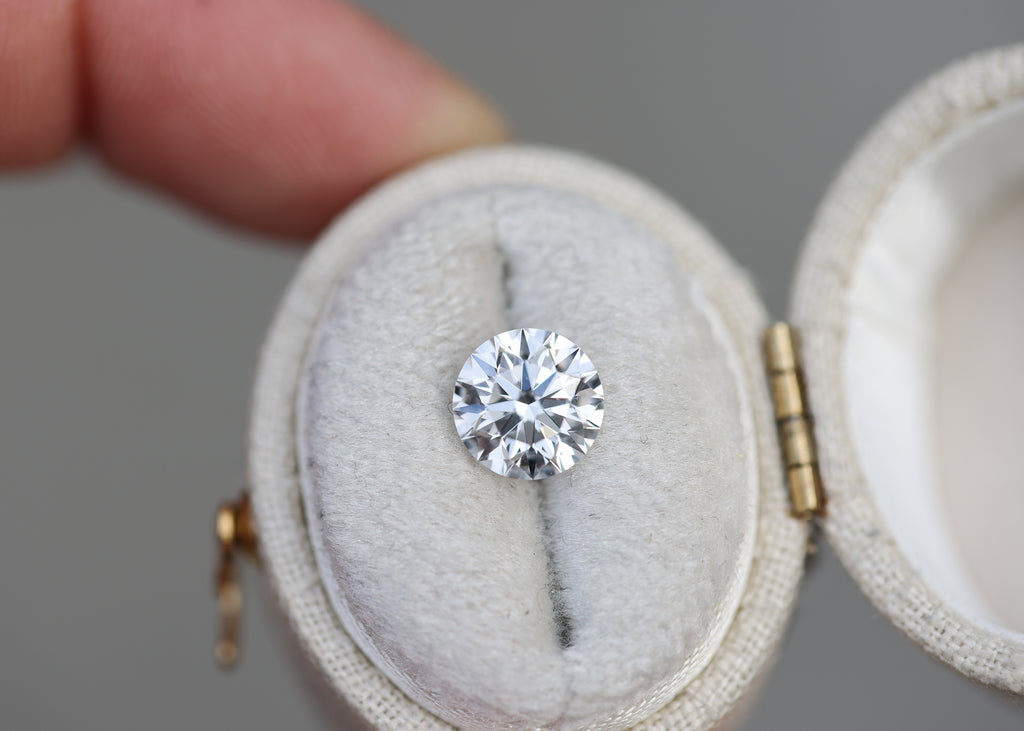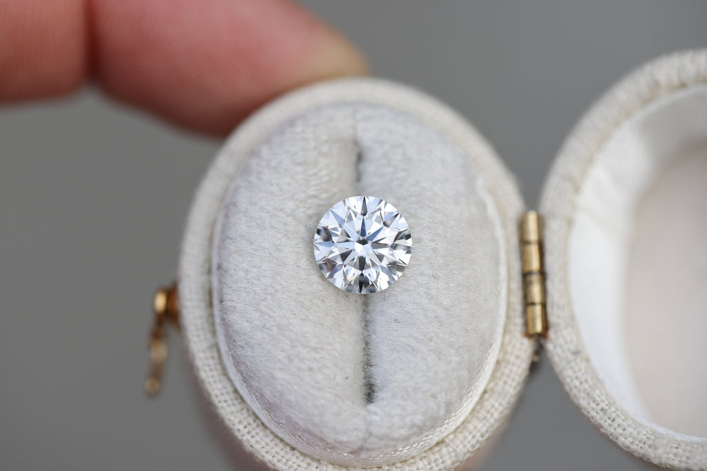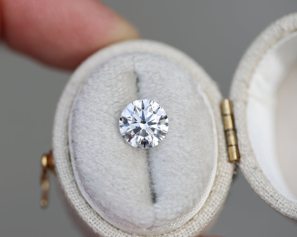 This absolute stunner is a round lab diamond with bright D color and the most incredible sparkle!