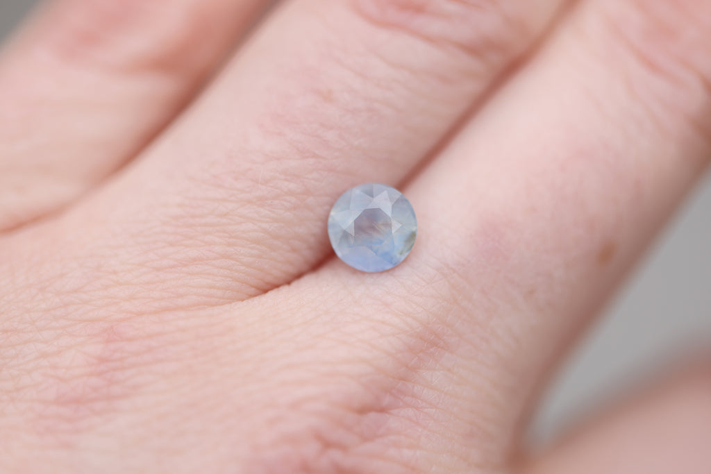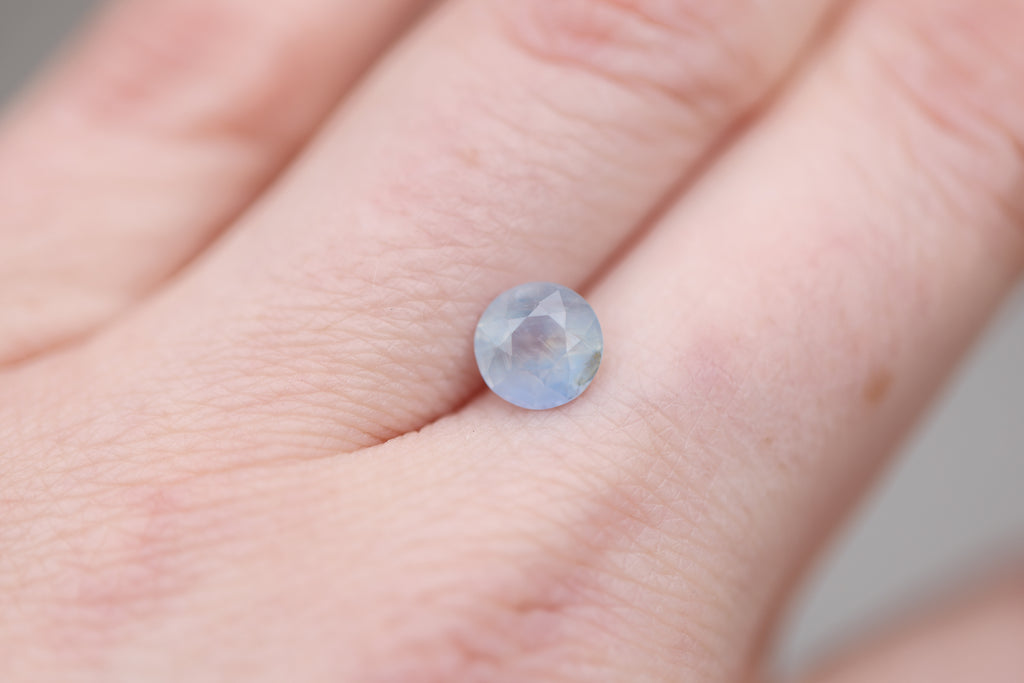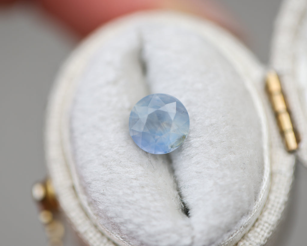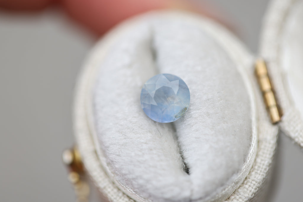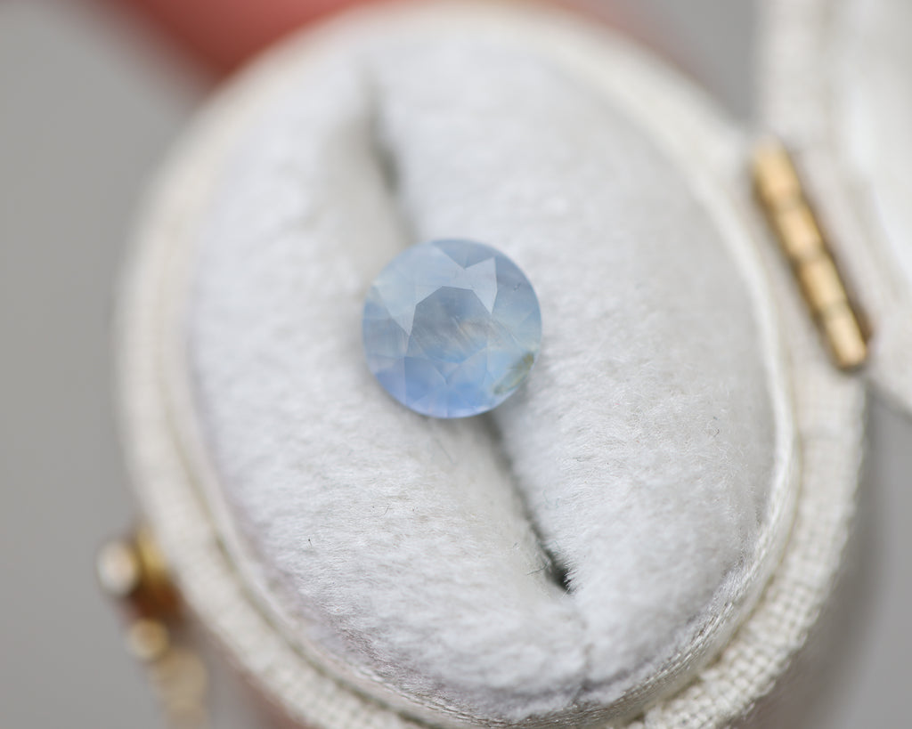 This gorgeous round opalescent sapphire is like a sunny sky with the prettiest light blue coloring!