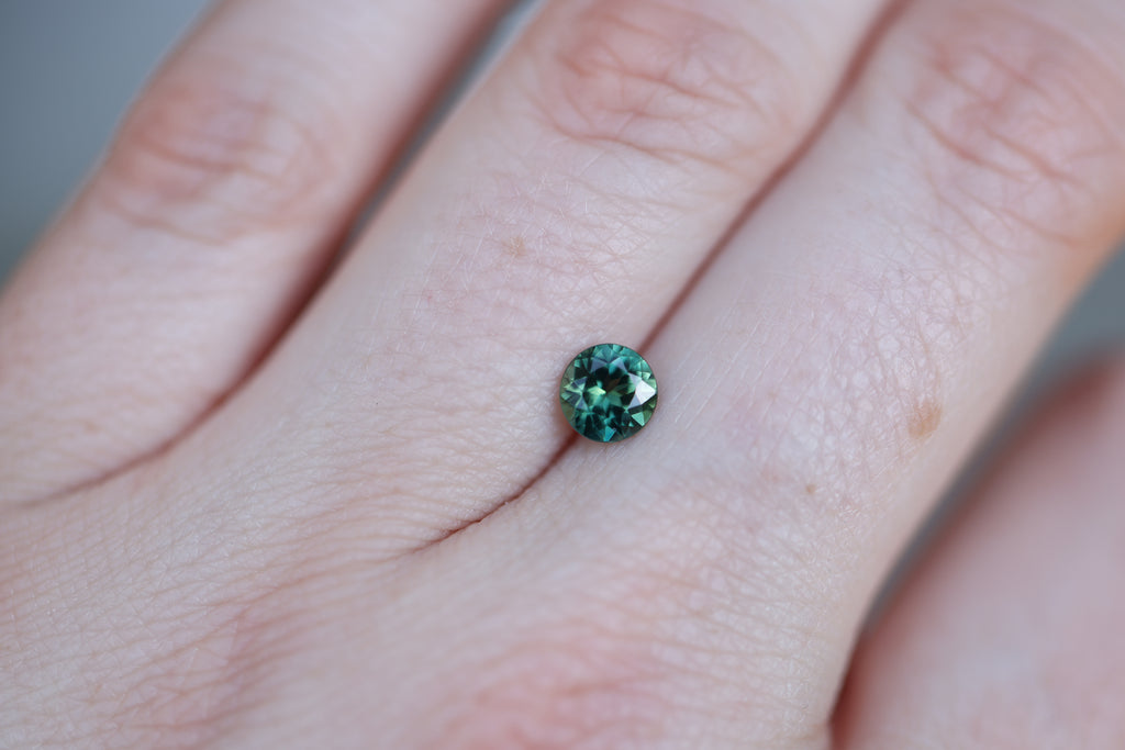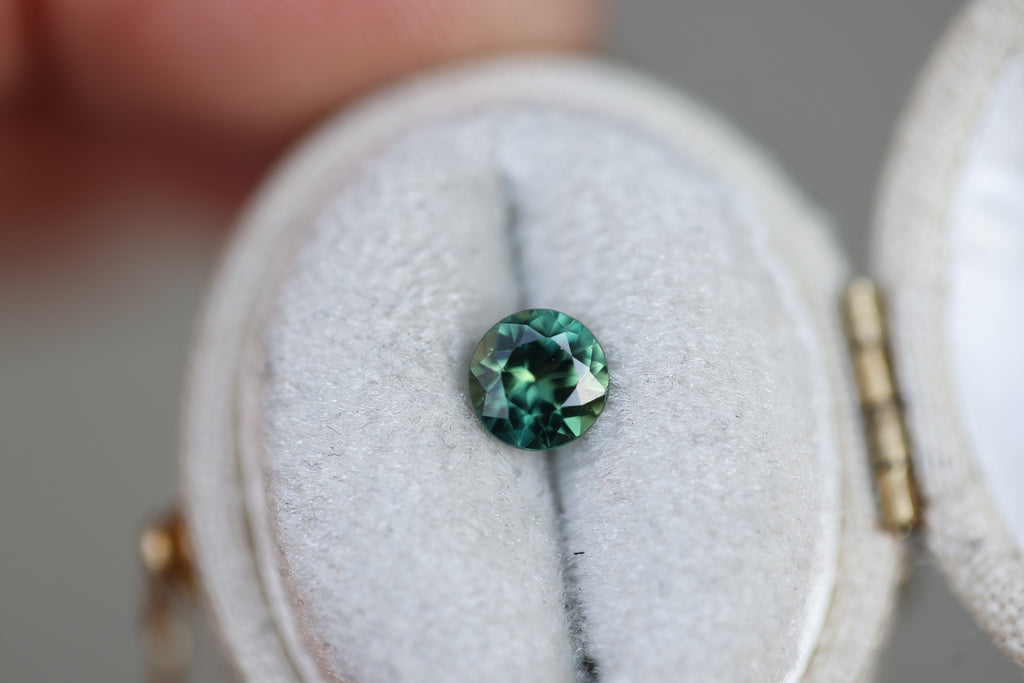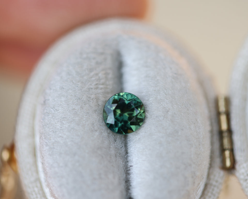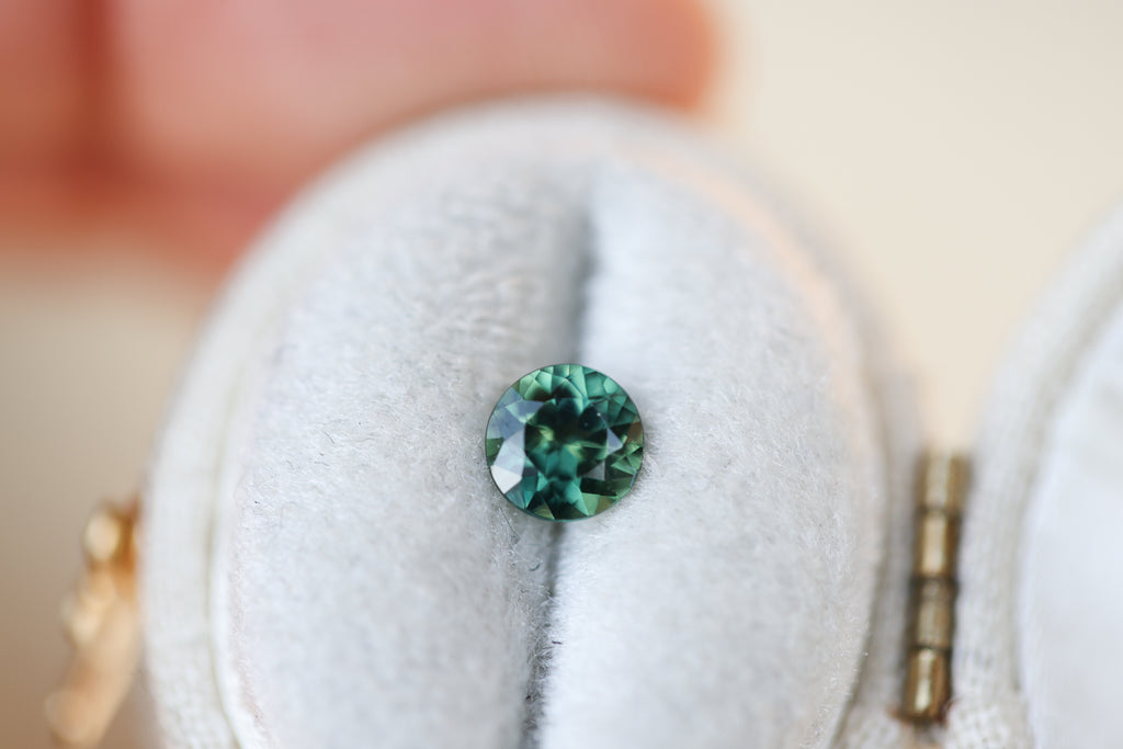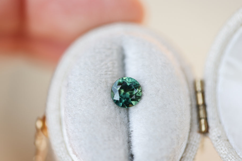 This absolutely stunning round sapphire has the most incredible green teal coloring!