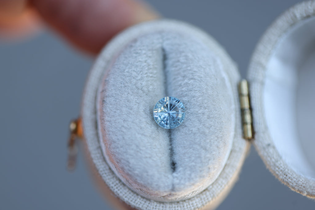 .85ct round light blue sapphire, Starbrite cut by John Dyer