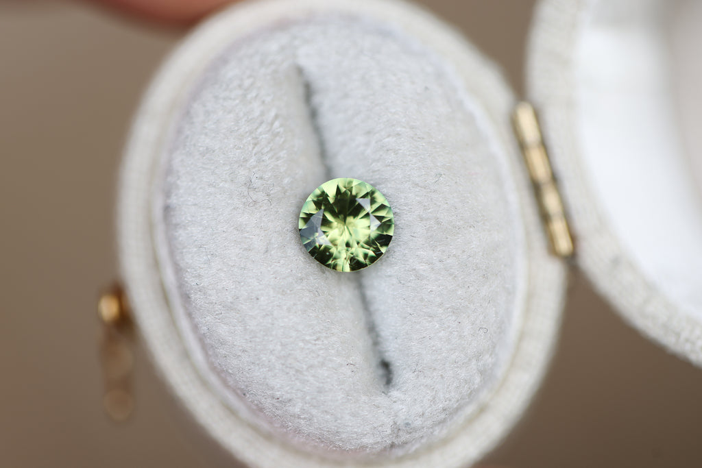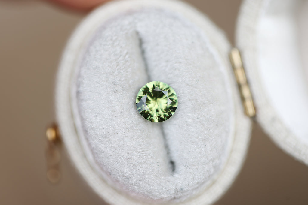 This stone is lighter green with a little green darker around the edges making it truly unique and special!