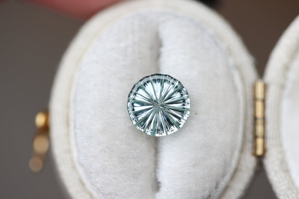 1.46ct round light blue green sapphire - Starbrite cut by John Dyer