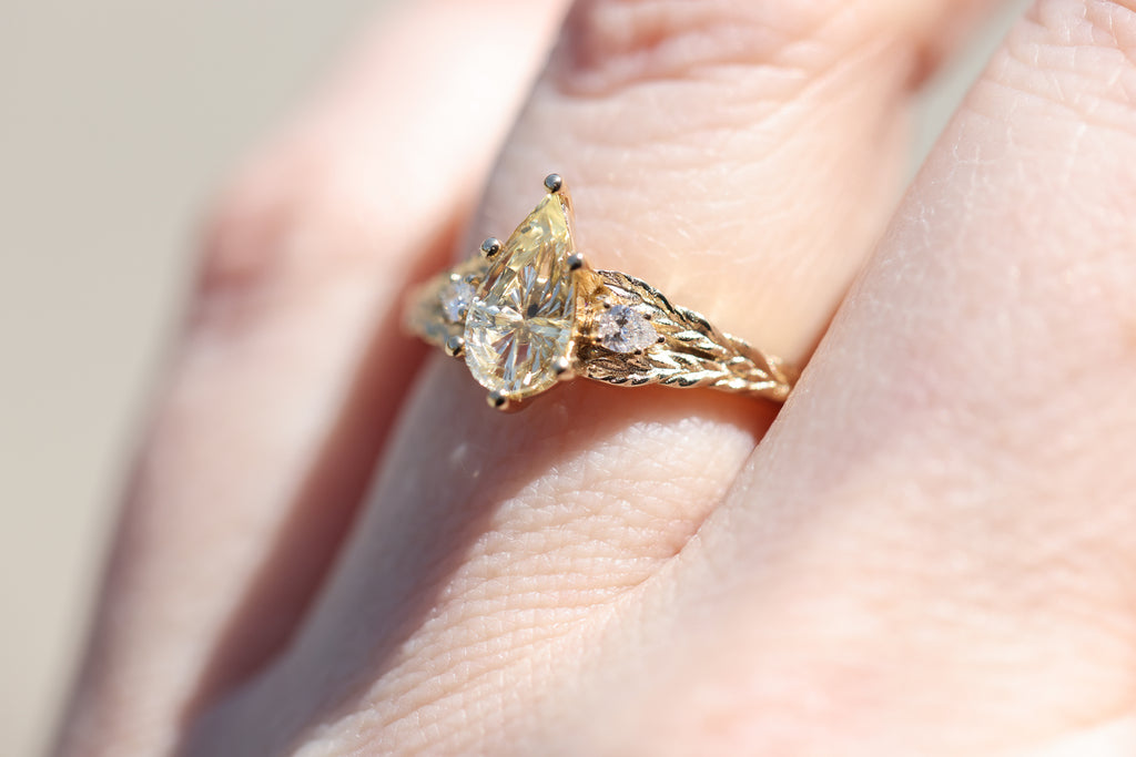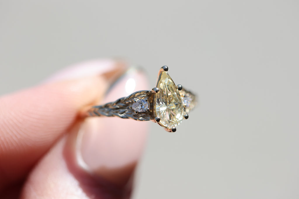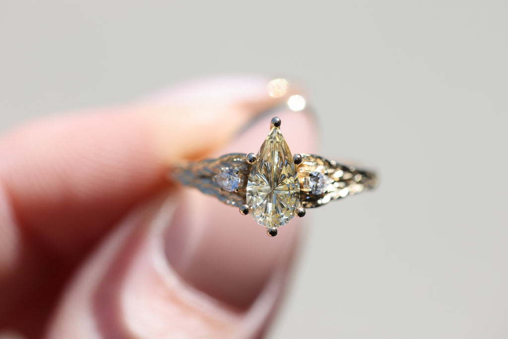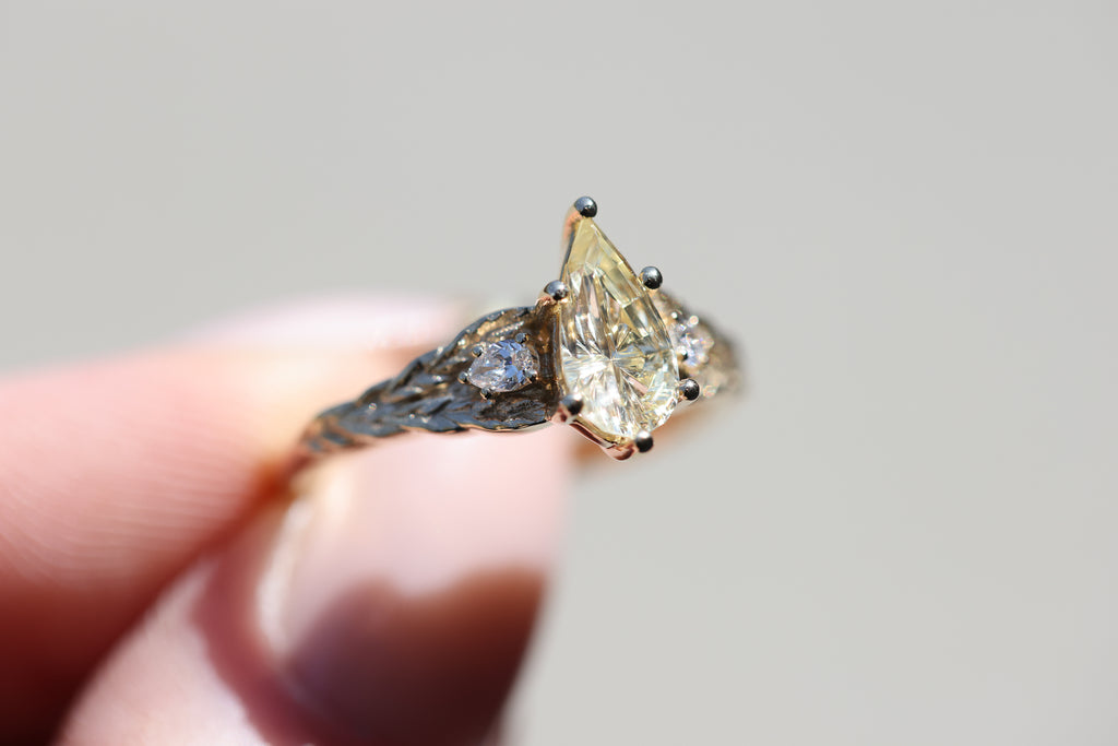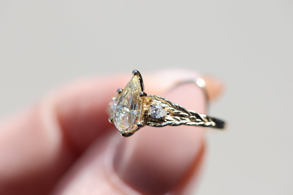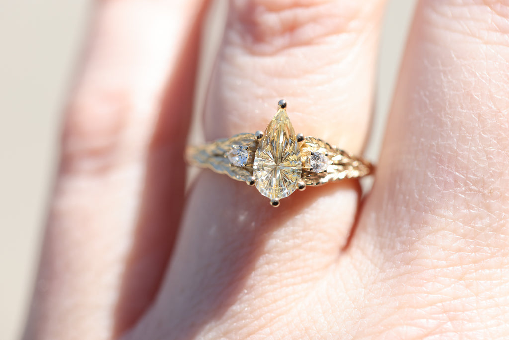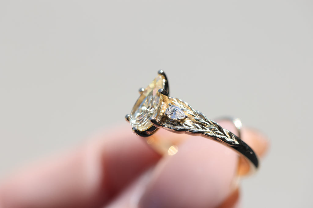 Ready to ship, Aspen with Starbrite pear sapphire