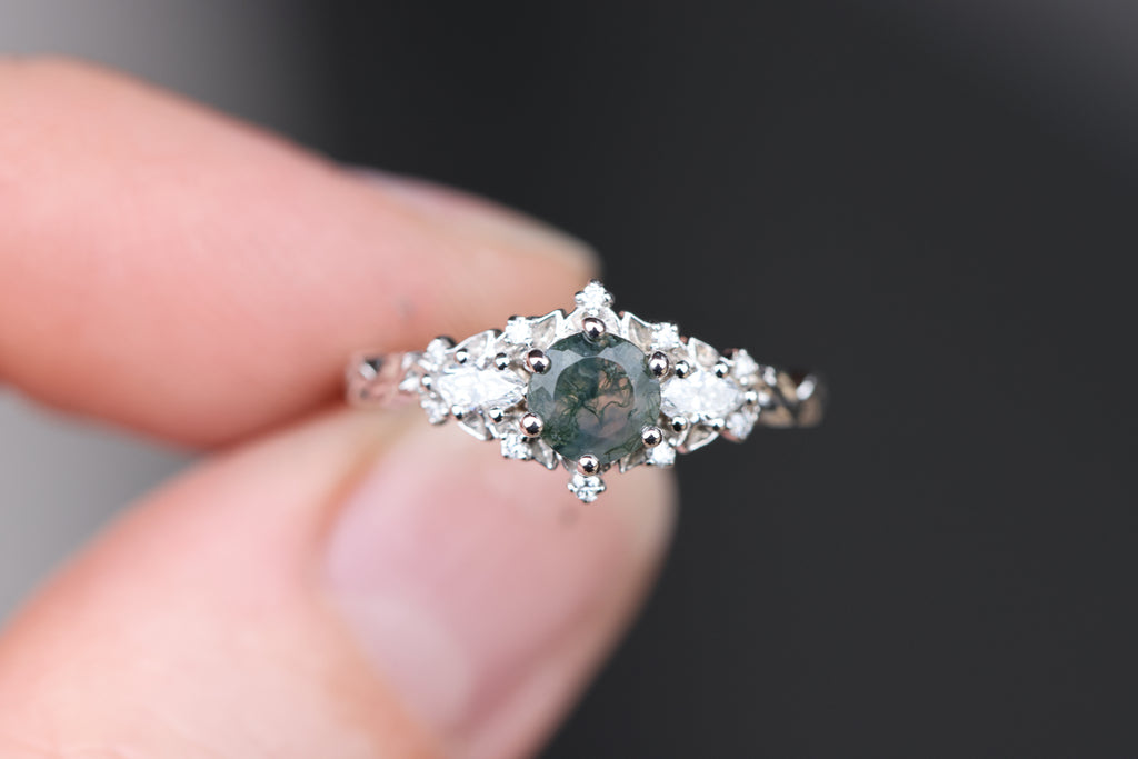 READY TO SHIP - Size 5.5 14k white Briar rose marquise sides