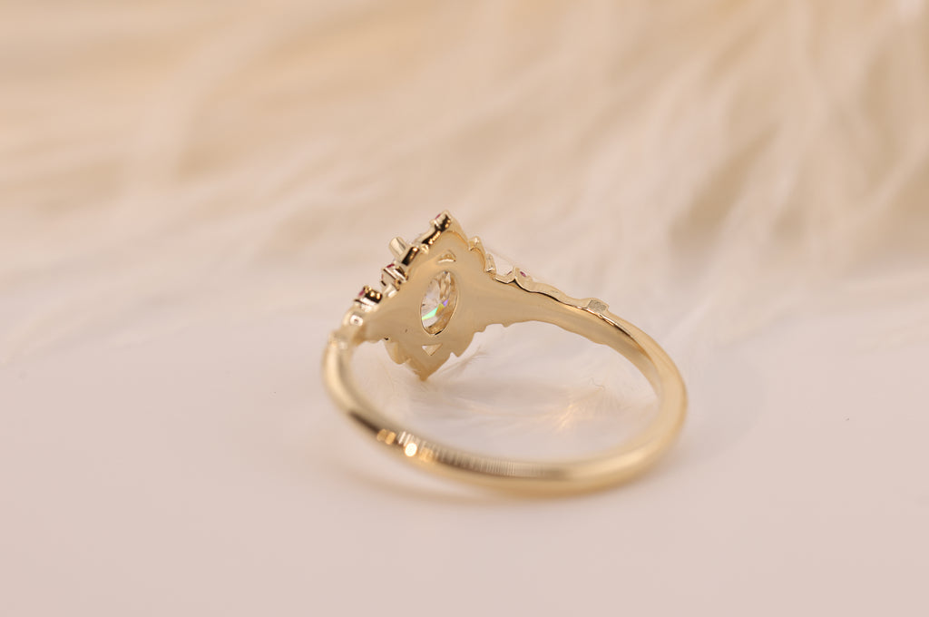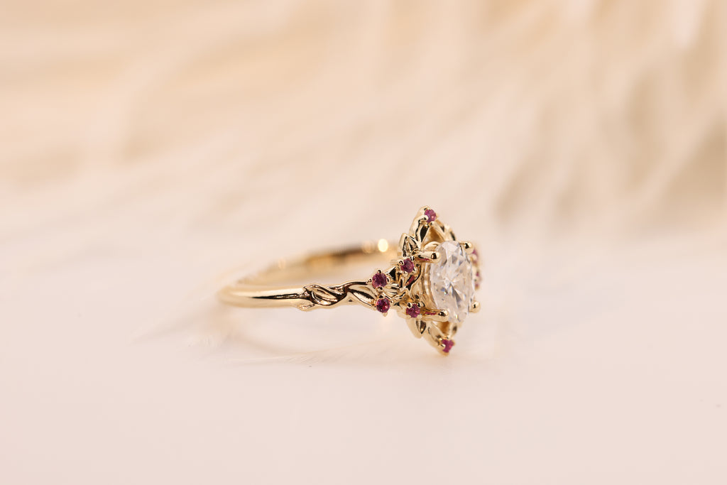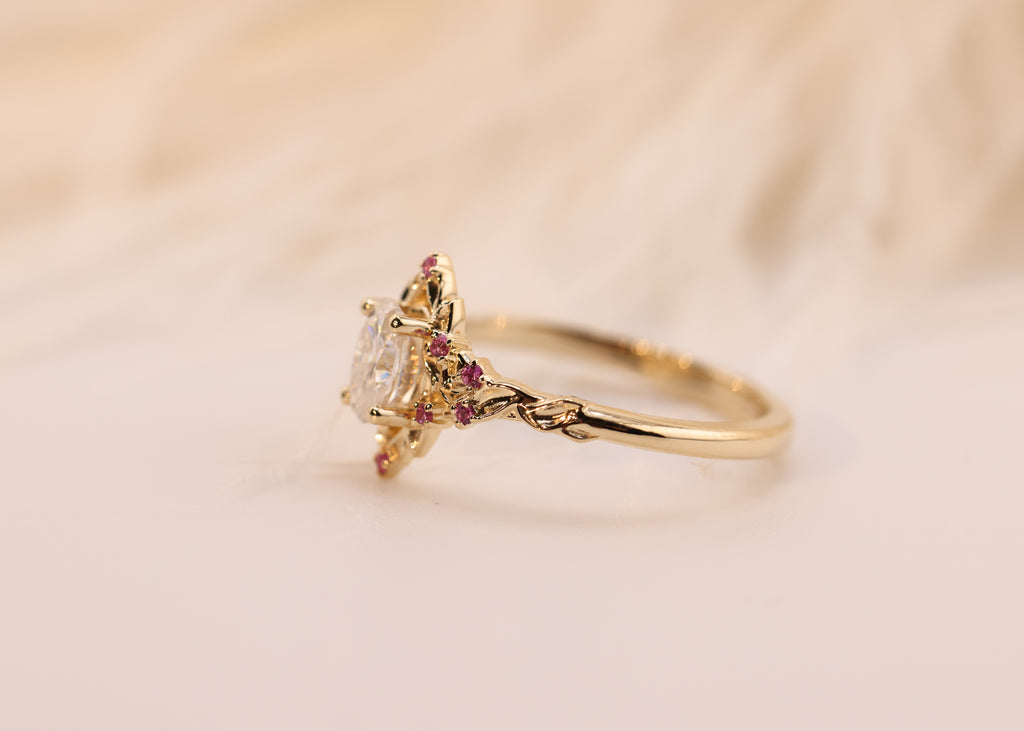 Ready to ship, Size 6.75 14k yellow, Briar rose halo