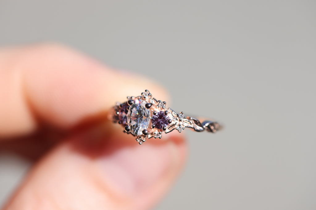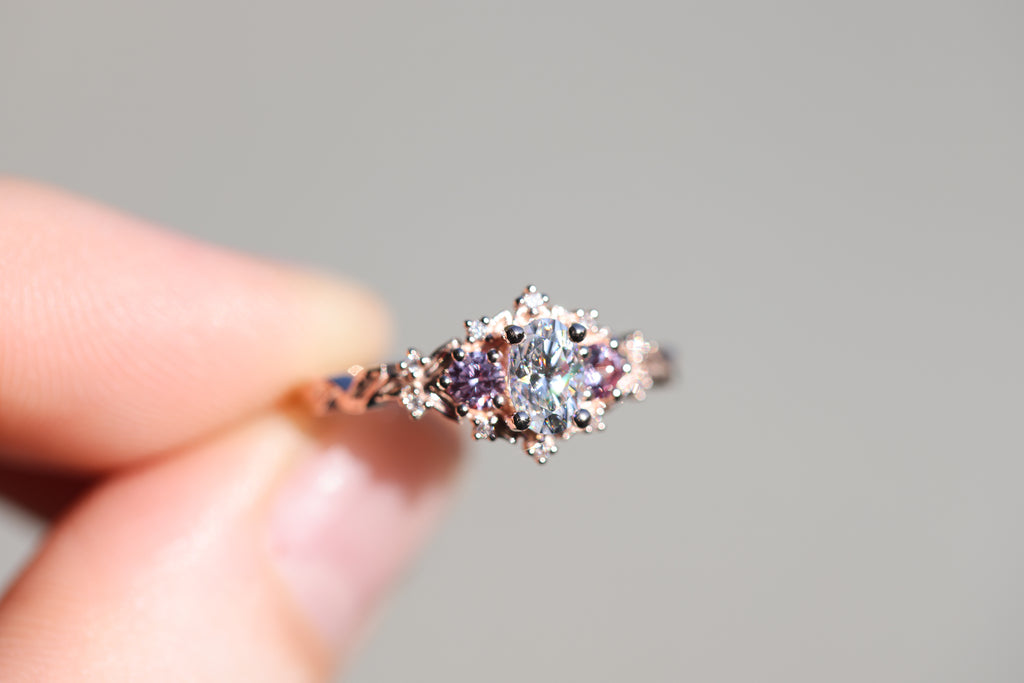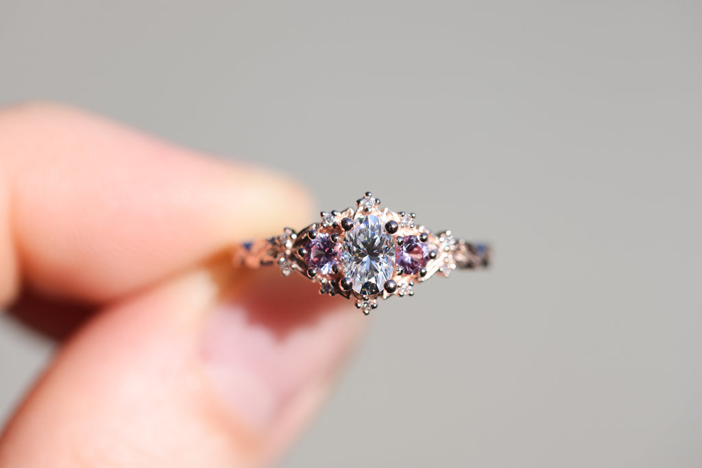 - 6x4mm oval moissanite center