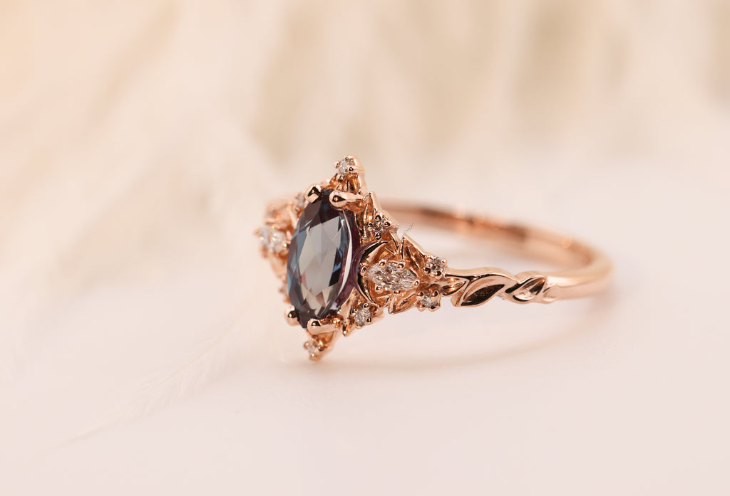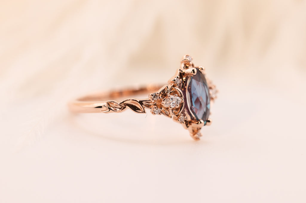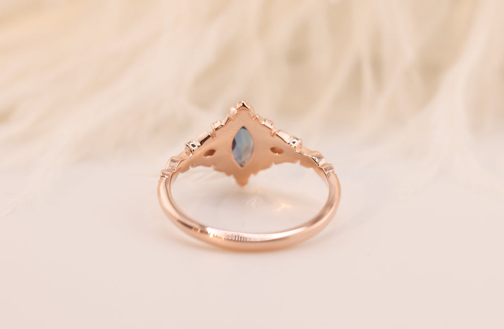 Ready to ship, Size 7 14k rose, Briar moon three stone