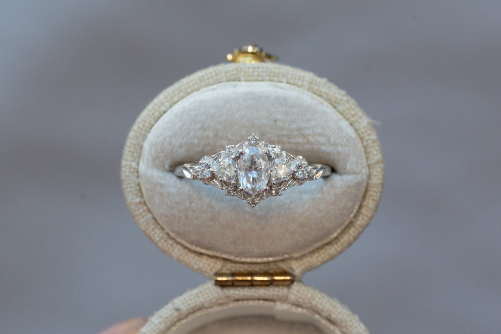 -Center: 6x4mm oval moissanite