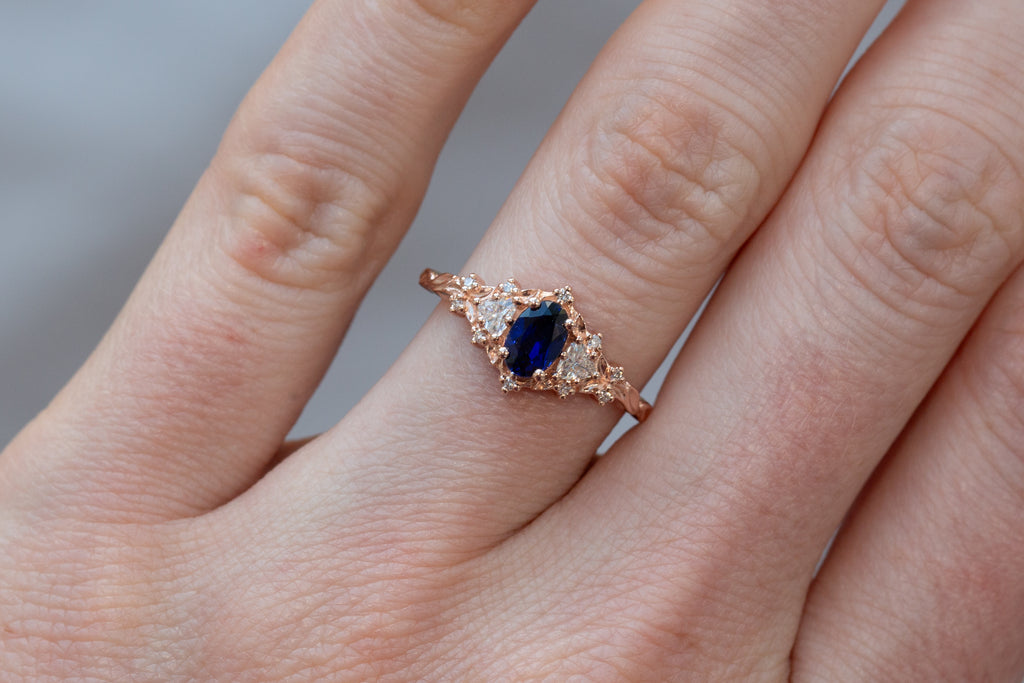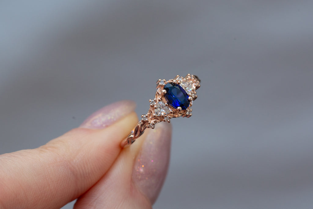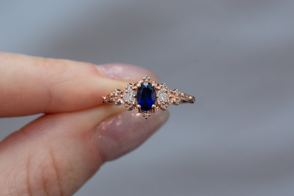 -Center: 6x4mm oval lab blue sapphire