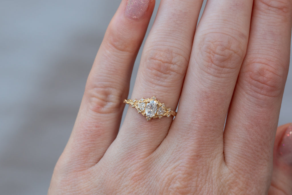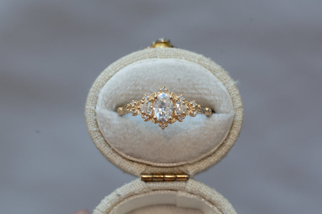 -Center: 6x4mm oval moissanite